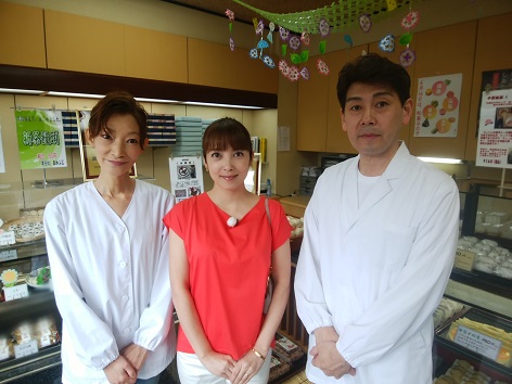俳優の敦士さんと、tvkのアナウンサーが、じゃがばた饅頭を、紹介して頂きました。